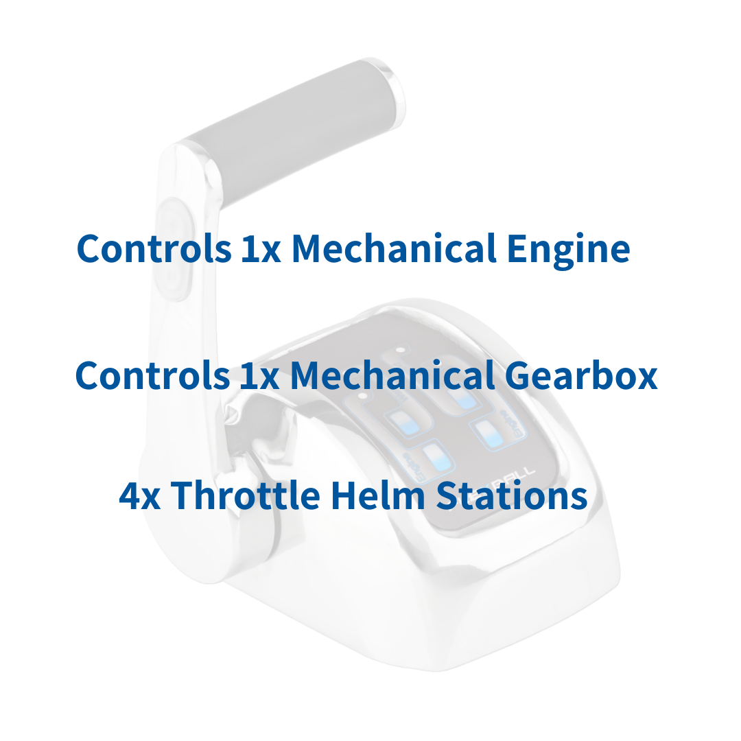 This system controls 1x Mechanical Engine and 1x Mechanical Gearbox. It connects via CANBus to 4x Flexball 4500 Single Throttle Station.