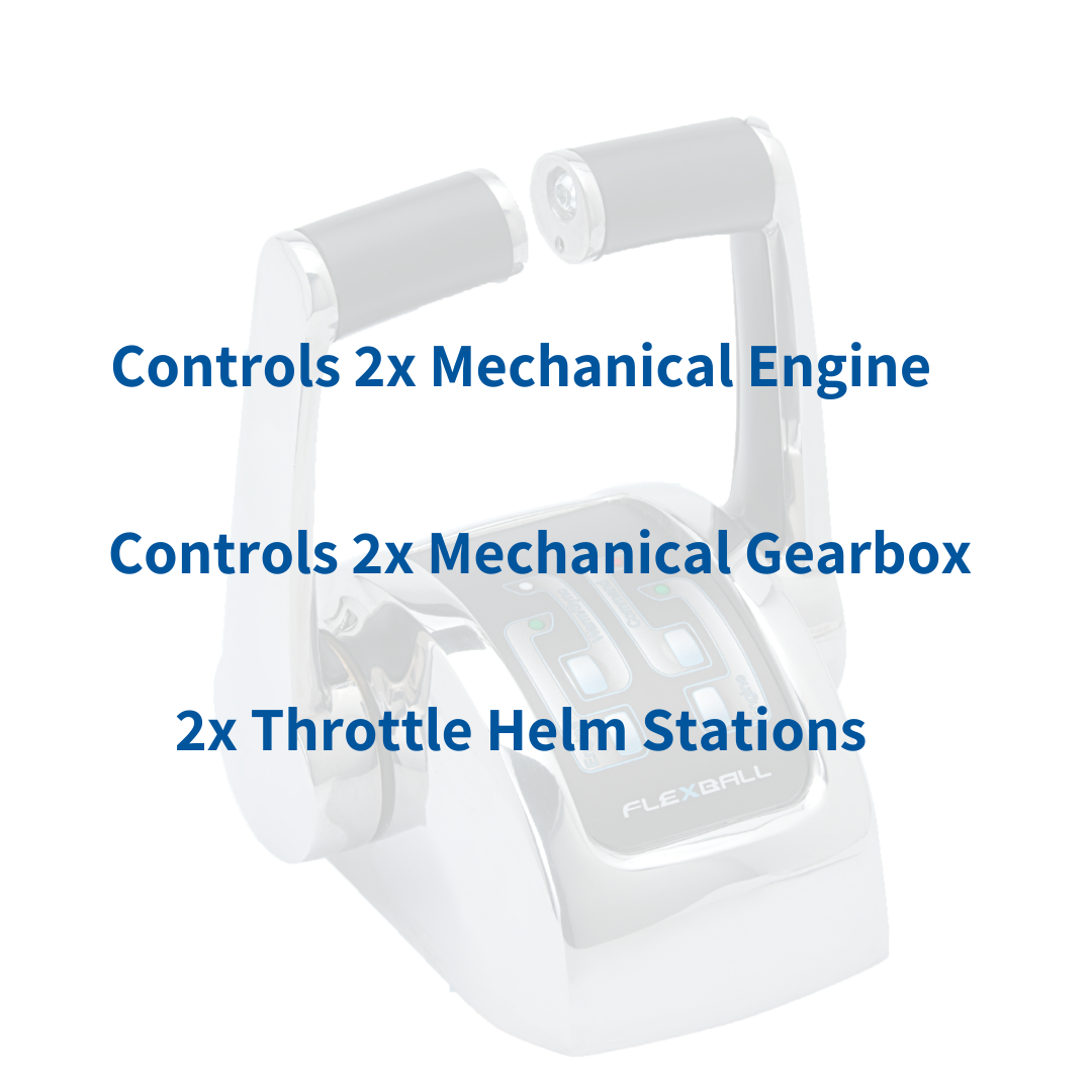 This system controls 2x Mechanical Engines and 2x Mechanical Gearboxes. It connects via CANBus to 2x Flexball 4500 Dual Throttle Station.