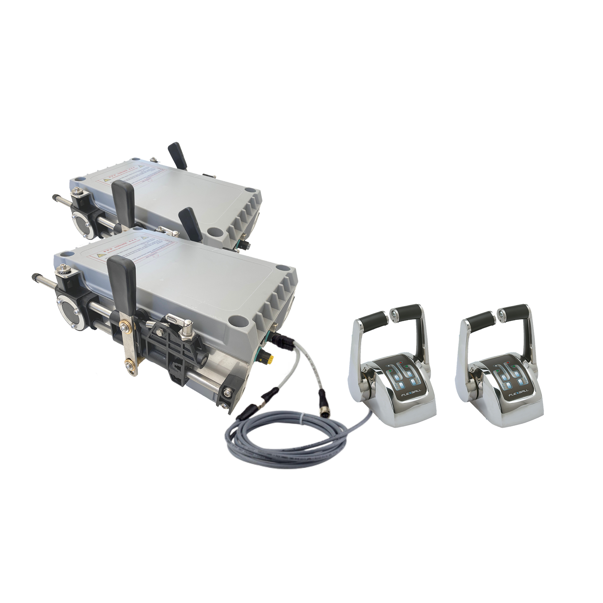 The 4500-MM22 system is multivolt 9-32V. The 2x actuator boxes are mounted within the engine room and 2x morse cables (per actuator box) are connected between the actuator box and the engine throttle and gearbox actuator for both the port and starboard engine. The 4500-MM22 system also can override the electric motors and move the levers on the side of the actuator box by hand in the event of a power failure, so you know you will always be able to get home.